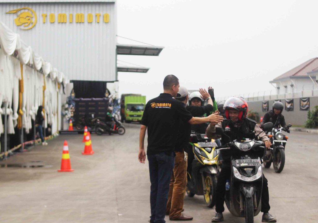 Hal tersebut disampaikan Division Head Sales & Marketing PT Tomimoto Tire Indonesia (PT TTI) Zaenal Arifin, di sela-sela kemeriahan acara yang berlangsung di pelataran pabrik ban Tomimoto, Selasa (12/8). “PT TTI sebagai produsen ban Tomimoto merasa berkewajiban memberikan gambaran nyata kepada para distributor sebagai perpanjangan tangan di bidang penjualan dan para bikers dari komunitas motor sebagai end user bahwa kualitas ban Tomimoto bisa diandalkan untuk segala kondisi jalan dan cuaca di Indonesia,” jelas Zaenal.